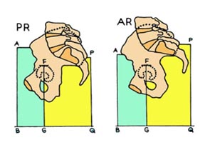 Note how the ASIS will appear lower (AB) and the PSIS higher (PQ).